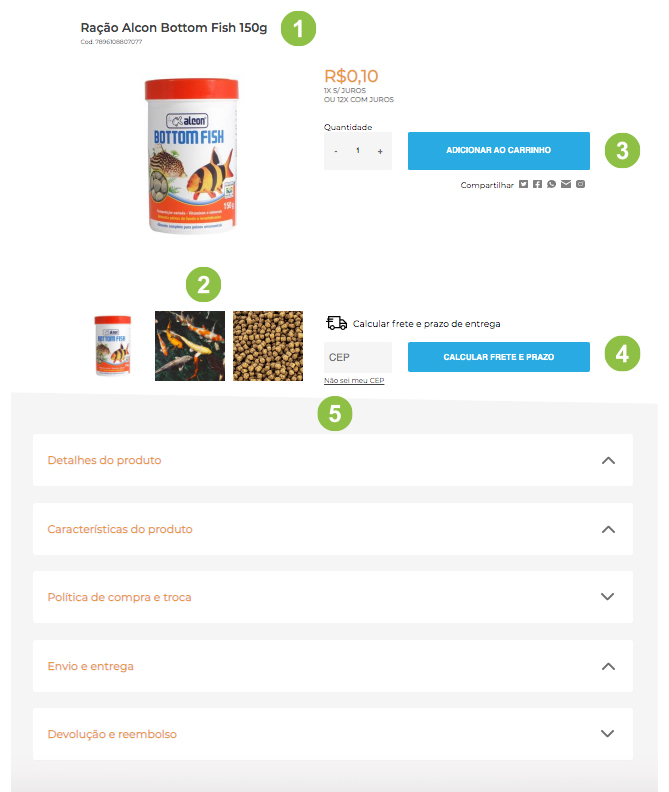 5. Ainda no final da tela poderá conferir os detalhes do produto, características e garantia.