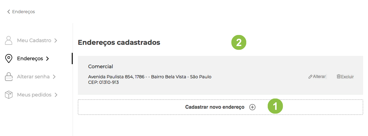 1. Cadastrar um novo endereço.